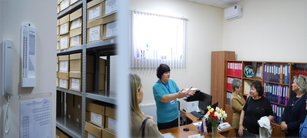 Формат «Круглый стол» стал идеальной площадкой для обсуждения насущных вопросов и обмена лучшими практиками Особой гордостью для нас стало посещение участниками нашего муниципального архива. С февраля 2023 года архив располагается в новом, современном здании, где оборудованы пять современных архивохранилищ и комфортабельные рабочие кабинеты, оснащѐнные по последнему слову техники. Это место, где каждый сотрудник чувствует свою значимость и вкладывает душу в свое дело.