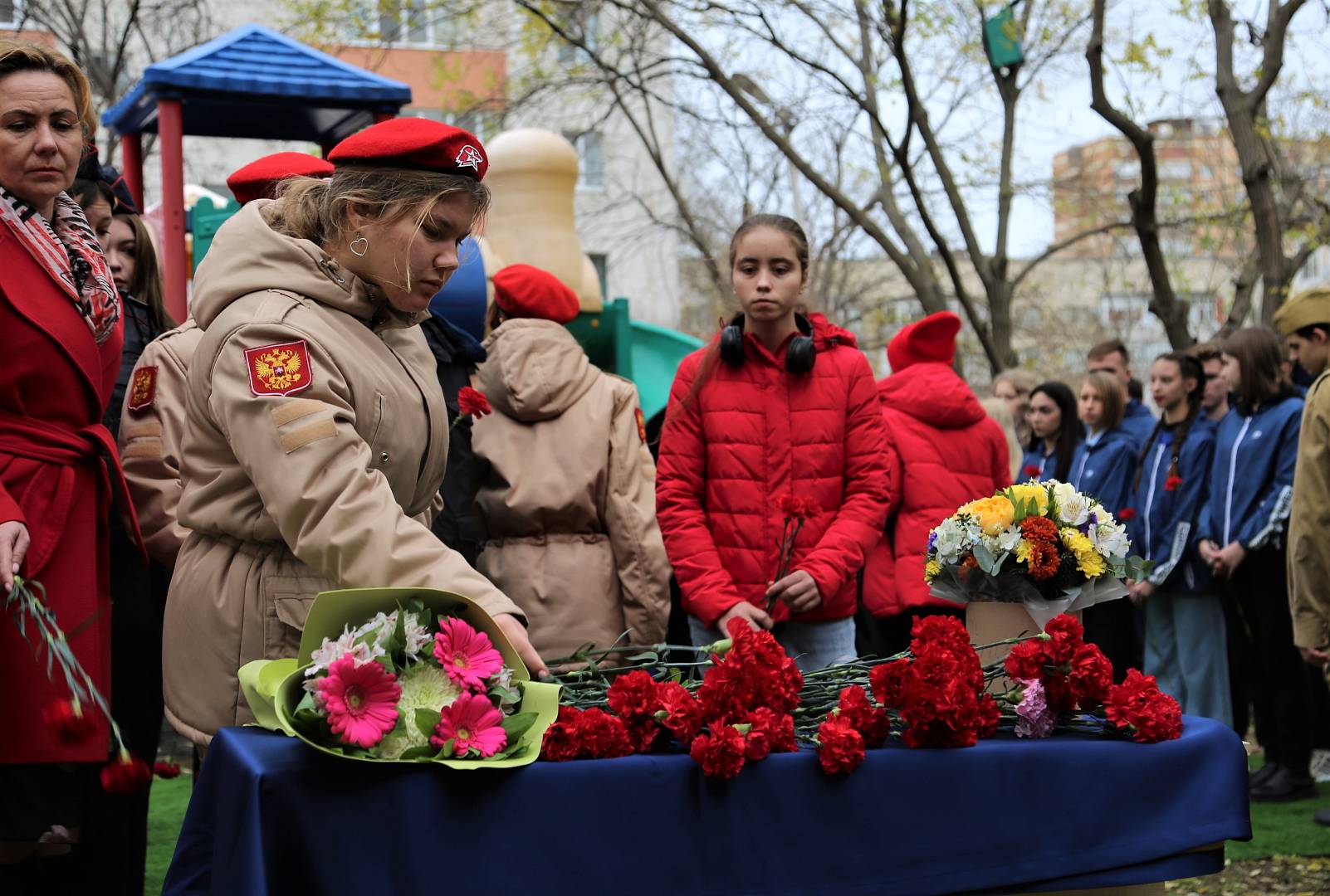 Память воинов почтили минутой молчания, в знак безграничной благодарности и уважения к Стене героев возложили цветы.