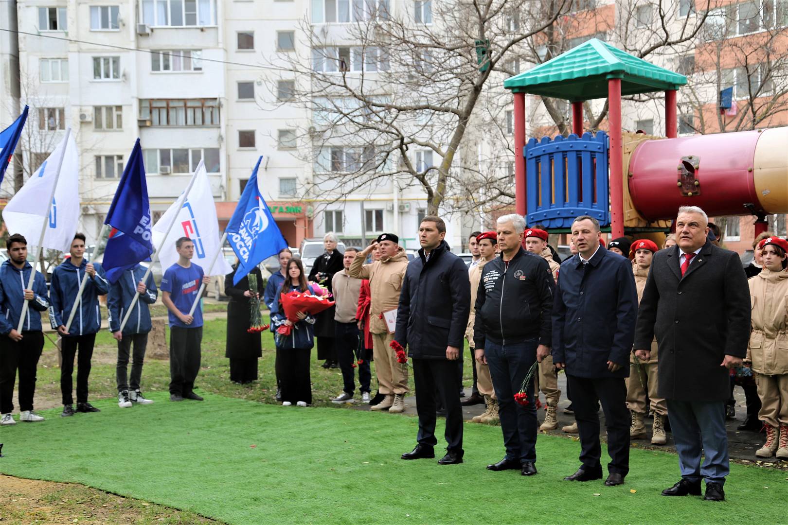 Новый патриотический мурал, посвященный трем воинам, которые в разные эпохи защищали нашу Родину, появился во дворе дома по ул. Ленина, 153. В церемонии открытия участвовали председатель Совета Леонид Красноруцкий, депутаты Роман Макаров и Владимир Пономарев, зампредседателя Совета ветеранов Алексей Говоров, родственники героев, молодежный актив Анапы и неравнодушные жители.