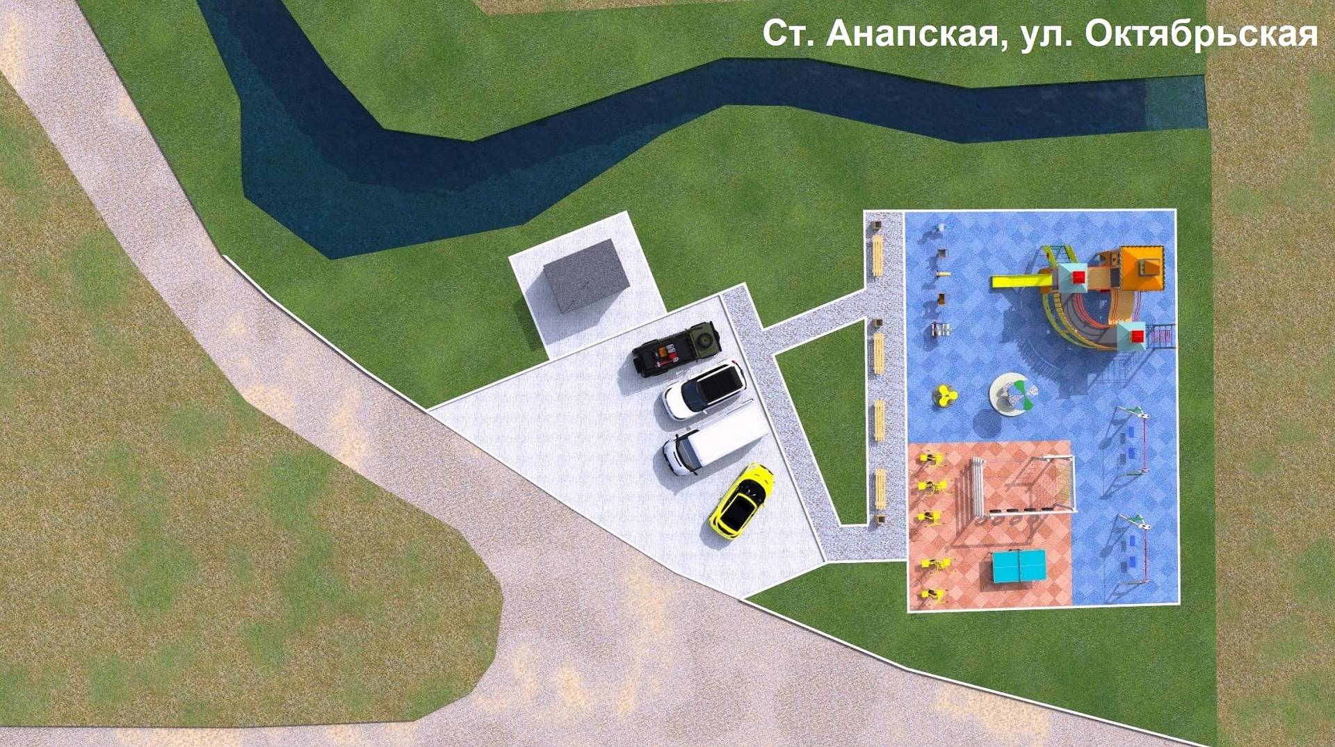 В Анапской предстоит благоустроить территорию по ул. Октябрьской. Здесь планируется разместить детскую и спортивную площадки, оградить территорию от ручья. Пешеходная часть будет покрыта тротуарной плиткой, а спортивная и игровая зоны – безопасным резиновым составом. Пространство будет доступно и для маломобильных граждан. Руководителем проекта выступила депутат Совета по Анапскому сельскому округу №19 Светлана Хижняк.