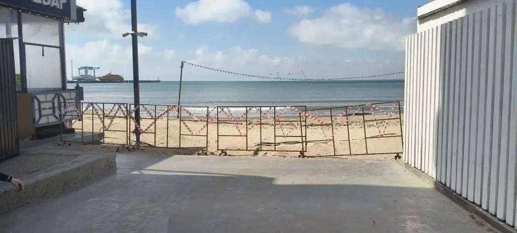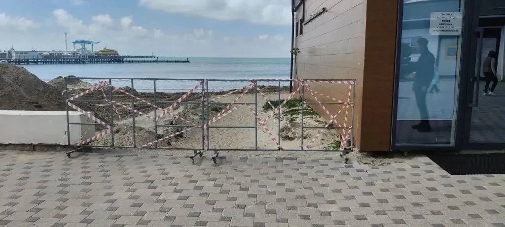 Участок пляжа, на котором проводятся работы по отсыпке чистого слоя песка, огорожен в целях безопасности