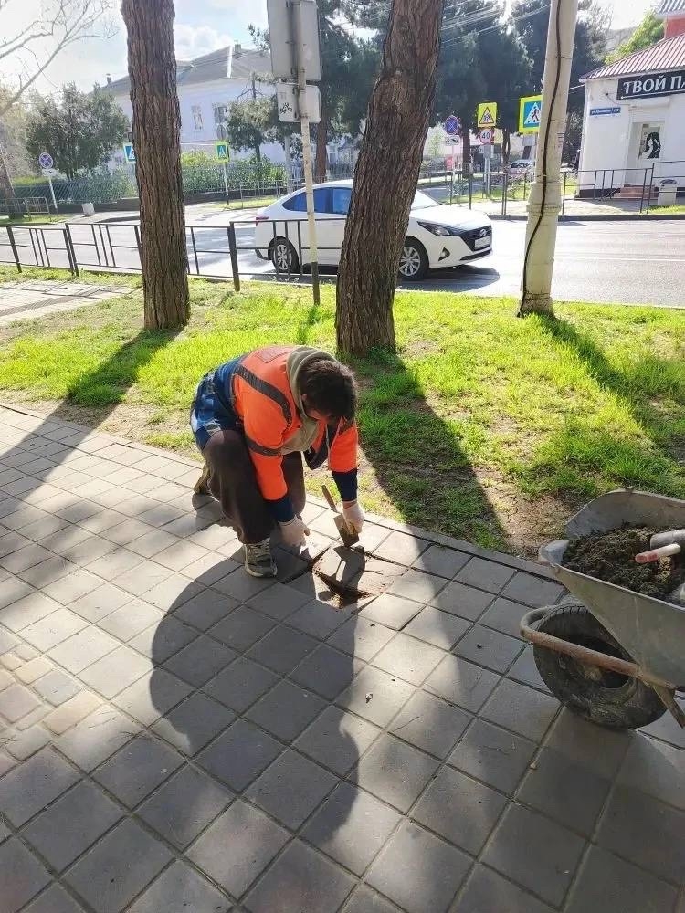 – Продолжаем готовить городскую инфраструктуру к сезону. Особое внимание – пешеходным зонам. Где необходимо, выполняют точечный ремонт тротуаров. Работы ведутся на улицах Терской и Крымской, а также начали обустройство пешеходной дорожки к детской площадке в Уташе.