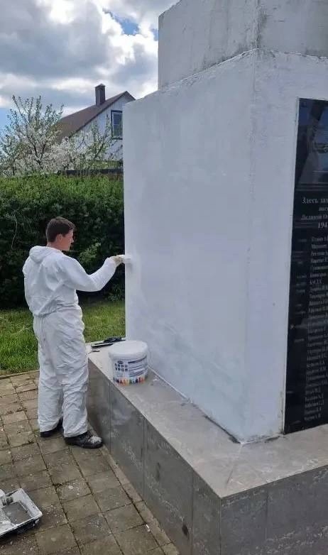 К 9 Мая приводим в порядок памятники. В эти дни завершили работы на мемориальных комплексах Юровки. Восстановлены слои штукатурки, обновлены надписи и элементы оформления.