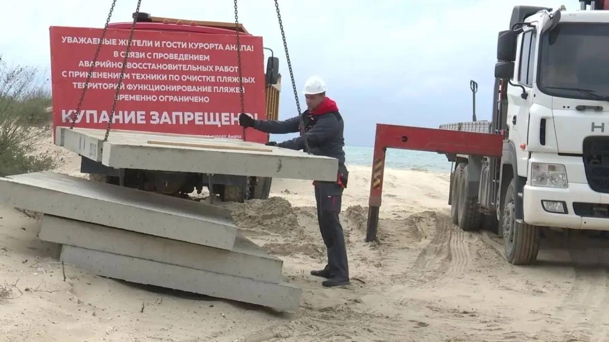 В районе центрального пляжа работают геодезисты, сюда завозят специальные плиты – создают временную технологическую дорогу для проезда грузовой техники. Уже завтра планируют начать отсыпку песка в районе центрального пляжа.