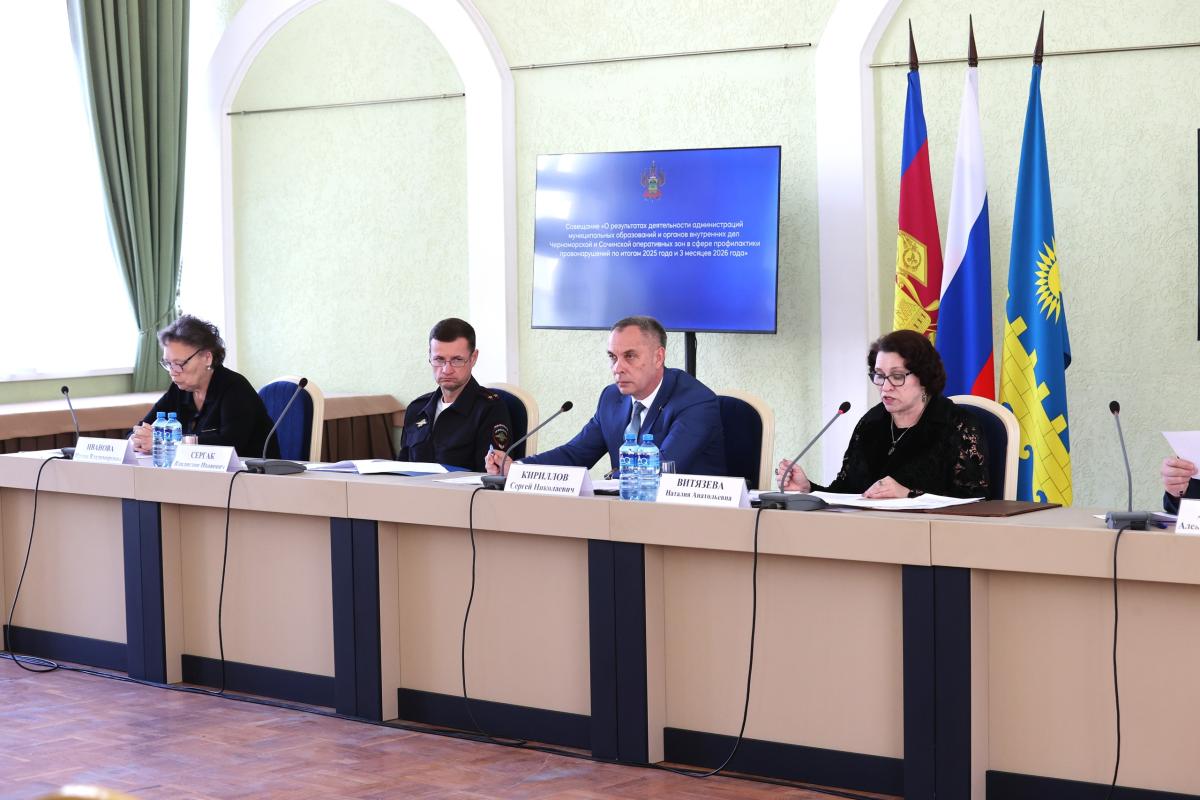 Сегодня в Гортеатре состоялось совещание по результатам работы администраций муниципалитетов и органов внутренних дел Черноморской и Сочинской оперативных зон в сфере профилактики правонарушений за 2025 год и 3 месяца 2026 года.