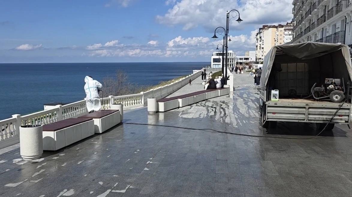 Продолжается покос травы: на этой неделе – улицы Парковая, Кирова, Набережная, Лермонтова, Азовская; сегодня – Крылова, Калинина, пр. Революции, Первомайская. Проводится влажная уборка на популярных территориях: Белой набережной и Театральной площади, в курортной части ведётся мойка плитки. В Приморском сельском округе выполняется спил и кронирование сухостойных деревьев.