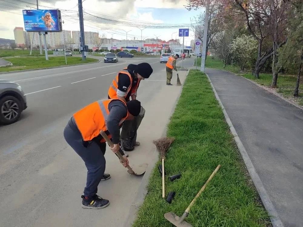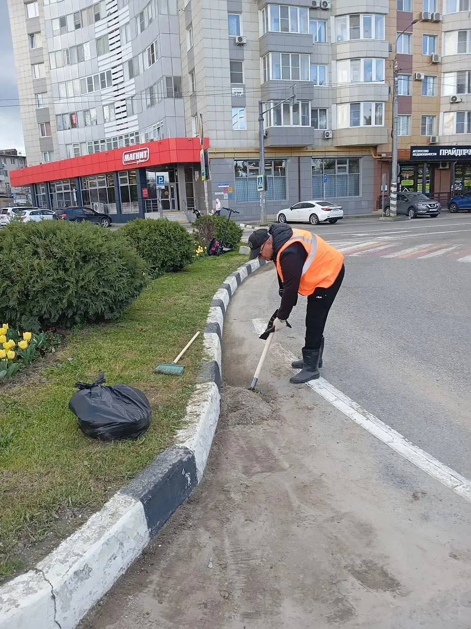 Санитарные патрули работают по всему городу, в том числе на улице Мирной (дорога к Центральному кладбищу). Работа по саночистке проводится комплексно, особое внимание пешеходным зонам и прибордюрным пространствам.