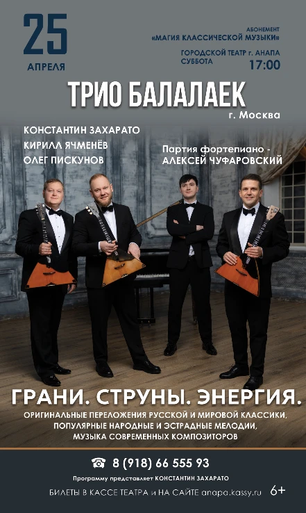 25 апреля в Городском театре XVII сезон абонемента «Магия классической музыки» завершится выступлением трио балалаек из Москвы.