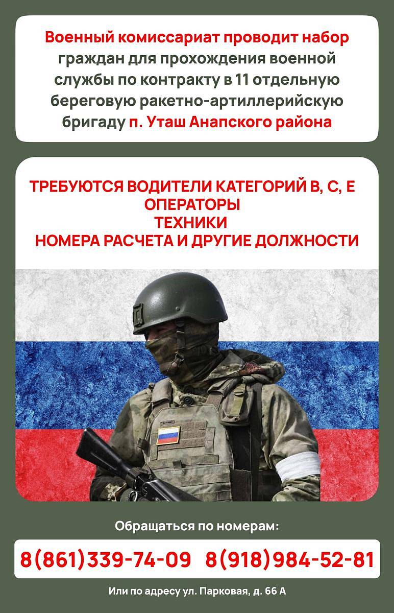 Военный комиссариат Анапы приглашает граждан заключить контракт на военную службу