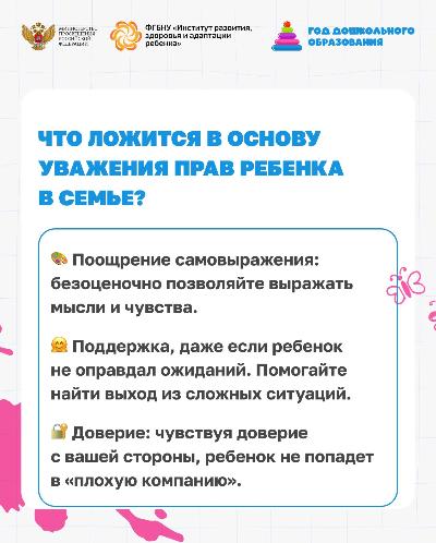 Ребенок — это не «собственность» родителей, а полноценный субъект права с момента рождения. Каждый день, общаясь с детьми, мы закладываем основы их уверенности в себе, здоровой самооценки, гармоничного развития и способности строить отношения с социумом. В наших карточках мы напоминаем об уникальности дошкольного периода и делимся принципами построения доверительных отношений в семье.