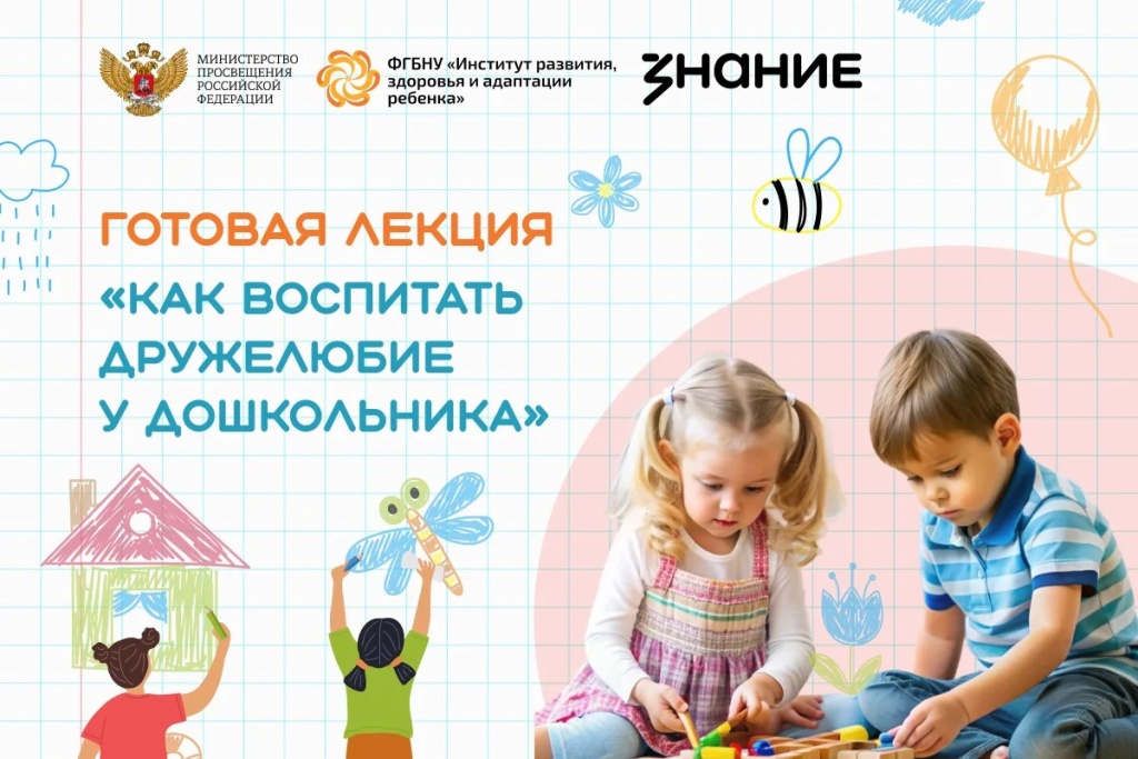 Институт развития ребенка совместно с Российским обществом «Знание» при поддержке Министерства просвещения Российской Федерации подготовил лекцию «Как воспитать дружелюбие у дошкольников» — для проведения просветительского мероприятия, посвященного формированию навыков общения, эмпатии и бесконфликтного взаимодействия у детей дошкольного возраста. Как провести лекцию: