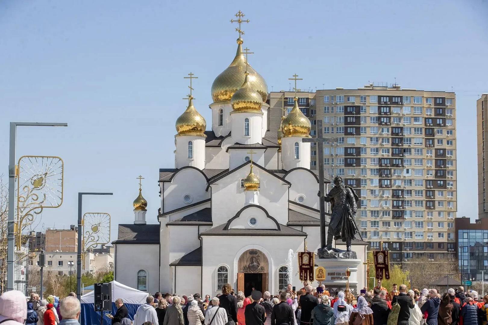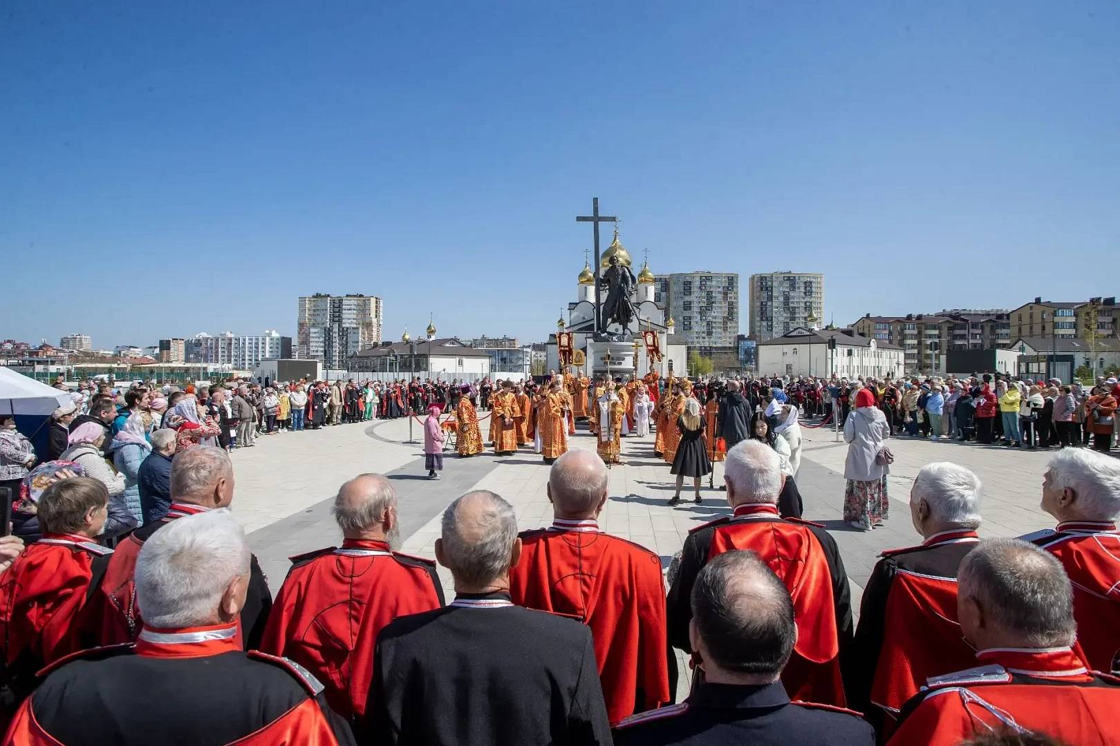 После утренней Божественной литургии под перезвон колоколов состоялся крестный ход вокруг храма великого равноапостольного князя Владимира. Его продолжил чин освящения памятника, который возглавил епископ Новороссийский и Геленджикский владыка Сергий.